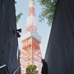 Der coolste Fotospot für den Tokyo Tower. Und eine Spiegelung im Nebengebäude.