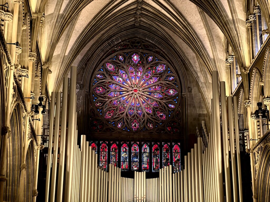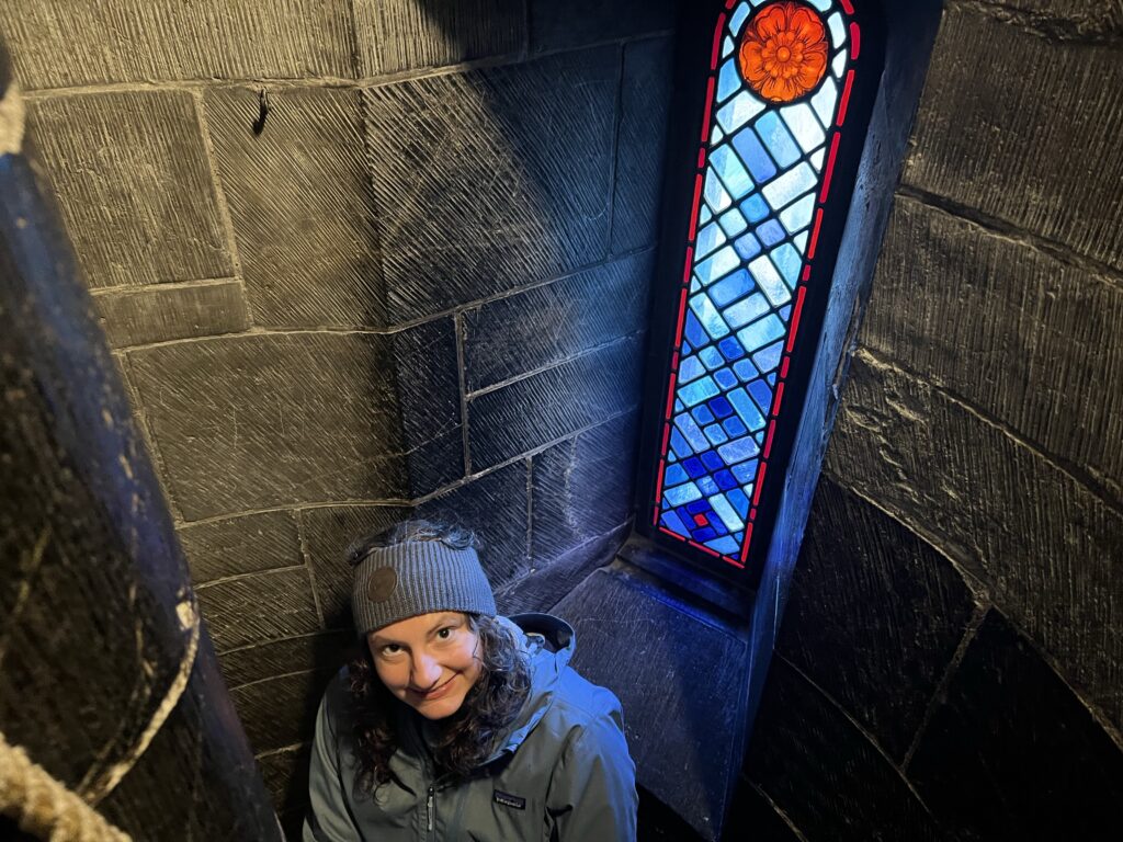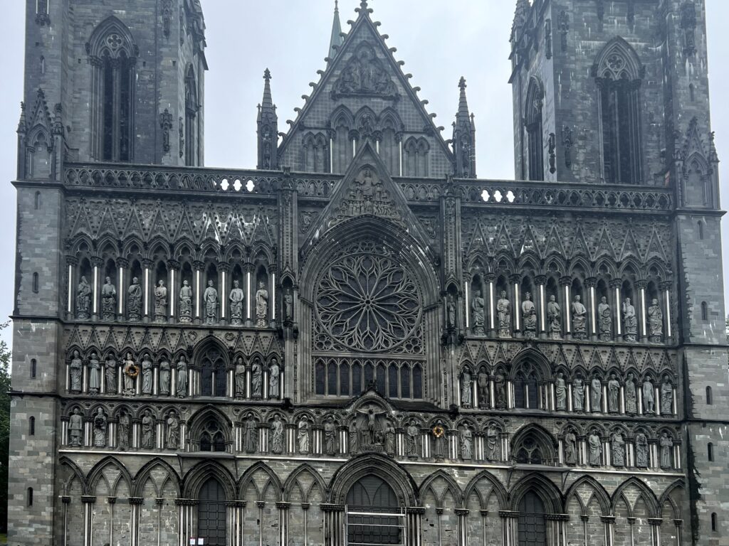 Angekommen in Trondheim hat es erstmal geregnet. Das erste mal so richtig seit wir in Norwegen sind. Wir haben uns dann die Stadt etwas angeschaut. Zuerst war der Nidarosdom an der Reihe. Dort gab es hübsche bunte Fenster und wir sind auf einen der Türme nach oben gelaufen. Die Treppe war allerdings sehr eng und steil, das war spannend.
