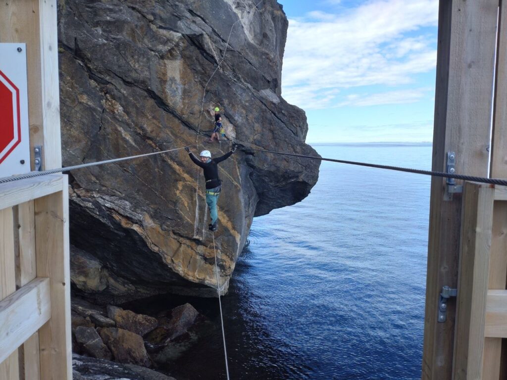 Heute sind wir einen Klettersteig gewandert (geklettert?). Er war sehr schön über dem Meer gelegen, spannend steil und das Wetter war perfekt. Am Anfang ging es über eine Seilbrücke zum eigentlichen Klettersteig nach oben. Ungefähr 70m bis nach oben.